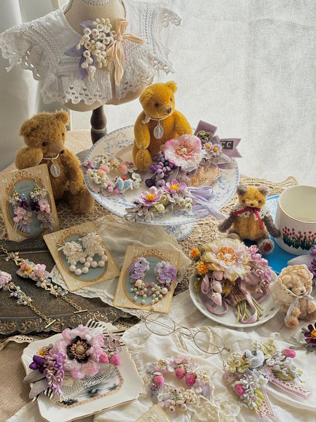 alpada A行 2025.12.052025.12.06 {"galleryImages":["https:\/\/romantic-a-la-mode.com\/wp-content\/uploads\/2025\/12\/alpada02.jpg","https:\/\/romantic-a-la-mode.com\/wp-content\/uploads\/2025\/12\/alpada03.jpg","https:\/\/romantic-a-la-mode.com\/wp-content\/uploads\/2025\/12\/alpada04.jpg"],"extraBottomMargin":""} 【紹介文】 alpada は、ナチュラルでアンティークな雰囲気の布花アクセサリーを作っています。花びらをカットし、専用の染料で一枚一枚丁寧に染め上げ、さらにコテをあてて表情をつけています。華やかなシーンにはもちろん、普段のコーデにもそっとなじむようなデザインを心がけています。「いくつになっても、かわいいを楽しんでほしい」そんな気持ちを込めて、一つひとつ大切に作っています。 【SNSなど】 【屋号(フリガナ)】 アルパダ 【ブースナンバー】 準備中