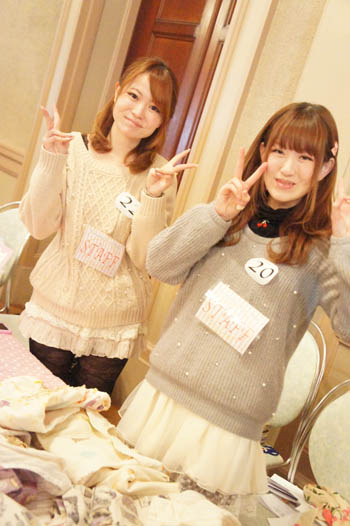机と椅子だけだった会場が、色とりどりの華やかなアイテムで